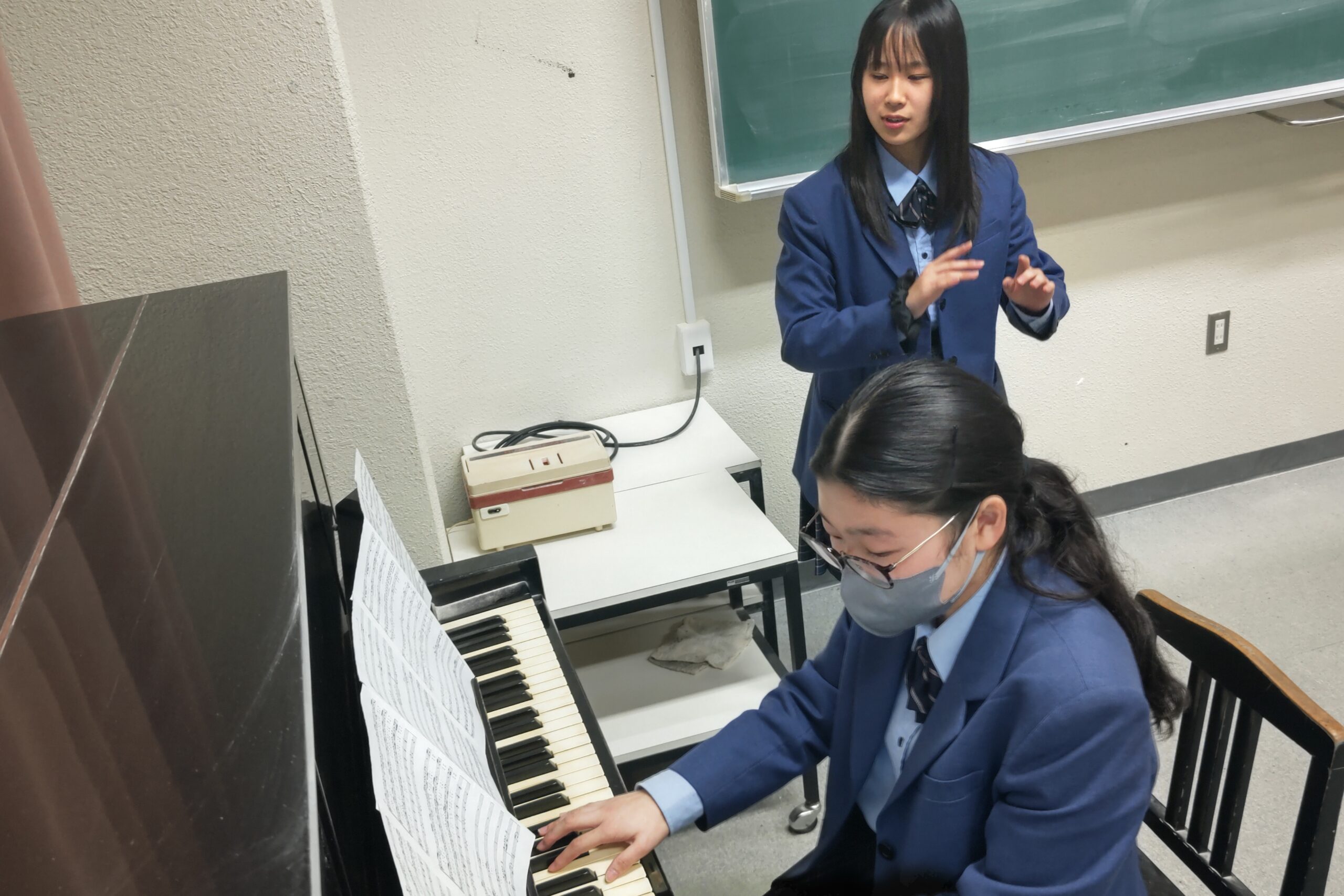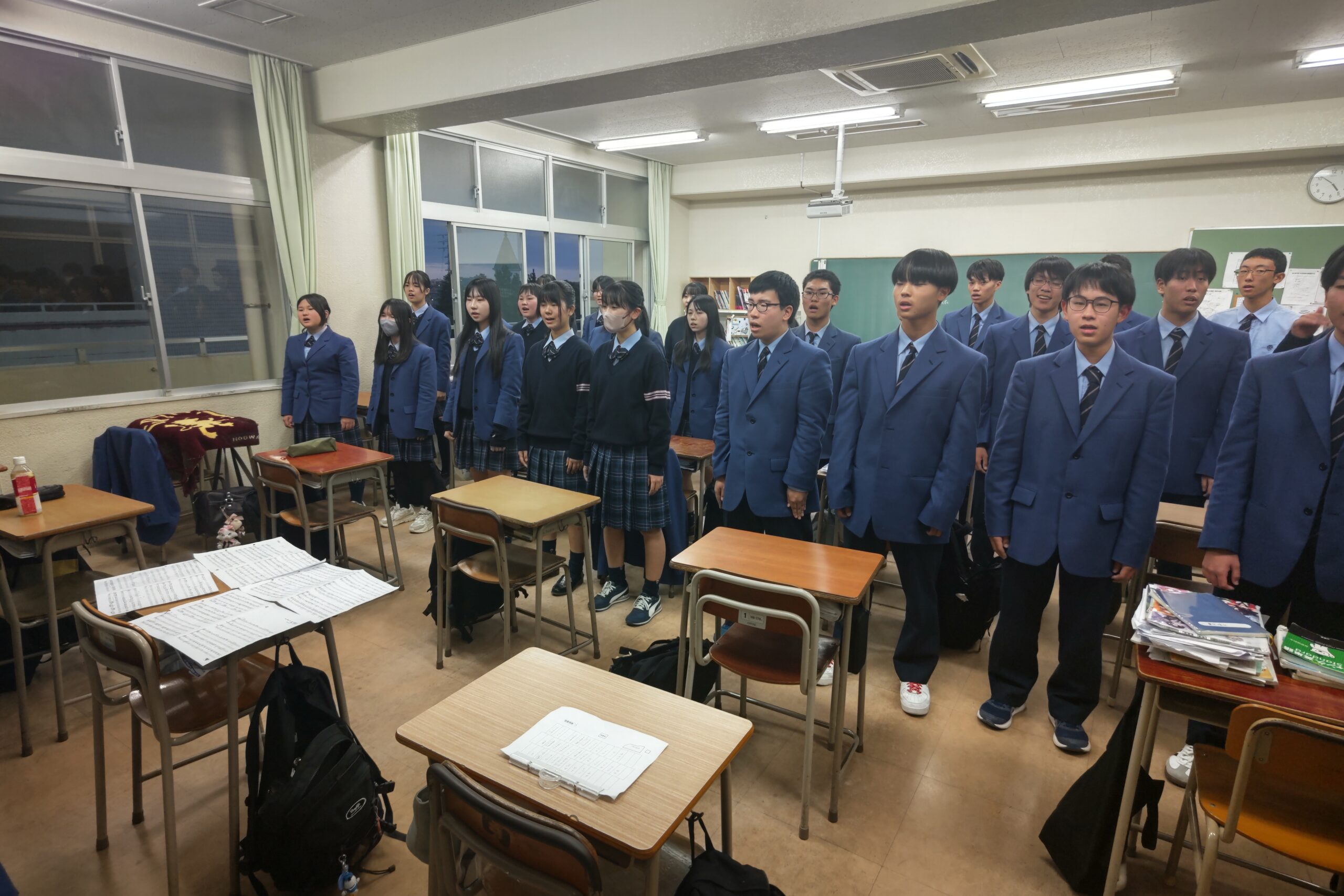 英数科は各クラス、「合唱」と「美術」に分かれています。R組は合唱で「YELL」を歌います。練習を始めたばかりの頃は、歌詞がわからず、音程もどう取ればいいのかわからないため、全員で歌っても、私の話す声のほうが大きいぐらいでした。(文責:杉村)