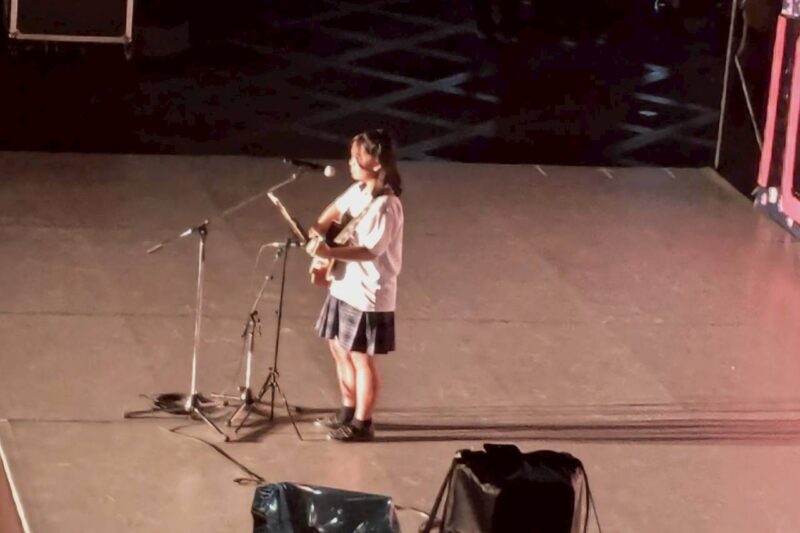 最後に後夜祭ですが、英数科から1名エントリーした子がいました。去年は友達と組んでやっていましたが、今回はソロで歌と演奏をしてくれました。去年よりも上達しており、とても素晴らしかったです。会場も彼女の演奏に合わせて手拍子やライトアップをし、まるでライブ会場化のように盛り上がりました。
