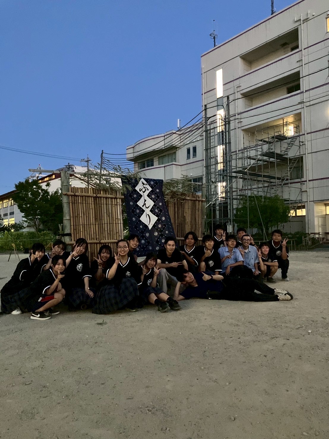 「学校で一番目立つ企画をやろう!」という思いから始まったこの挑戦では、リーダー会の生徒を中心に企画、竹の伐採・節取り、装飾やTシャツの作成、当日の運営まで、すべてを自分たちの手で行いました。