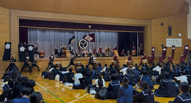 部室では「結心」を演奏して和太鼓の音を通して桜花太鼓の部員一