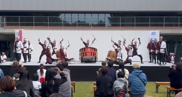 今回は2曲目と3曲目の間に太鼓体験もあり、みんなで一緒にリズ