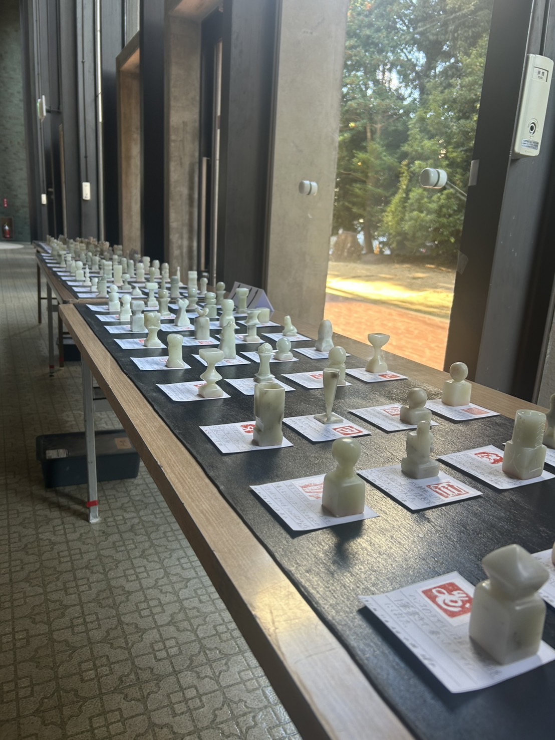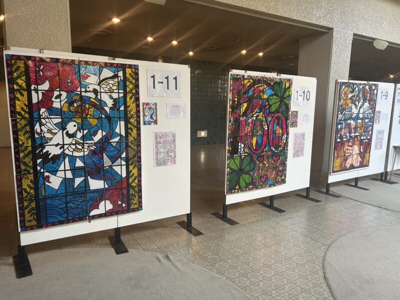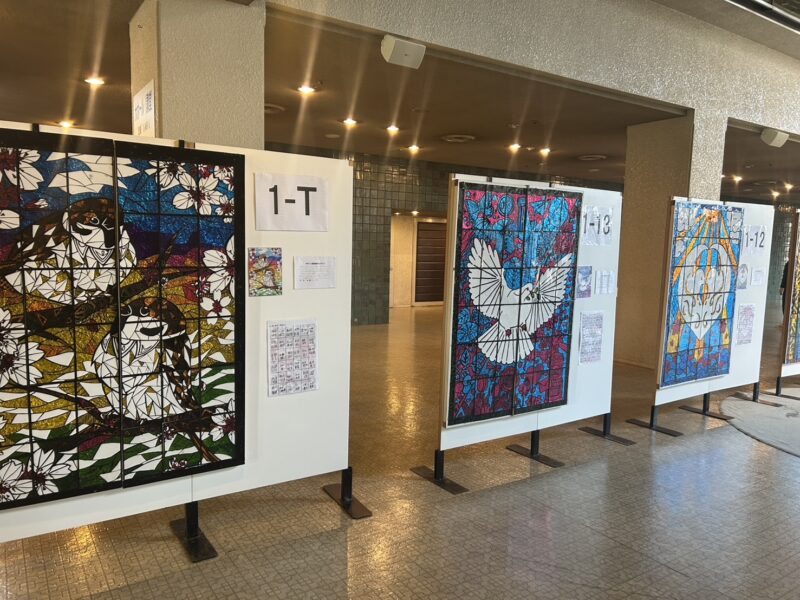 11月21日(金)1学年による芸術発表祭がアイプラザ豊橋にて開催されました。美術選択クラスは「桜丘100周年」をテーマに個々のプッシュステンドを合わせて、クラスでひとつの作品を作り上げました。個人では篆刻(てんこく)という中国から伝わった石の印鑑を作成しました。それぞれ細かな作業を必要とし、クラスや個人の特徴を生かした素晴らしい作品ばかりでした。