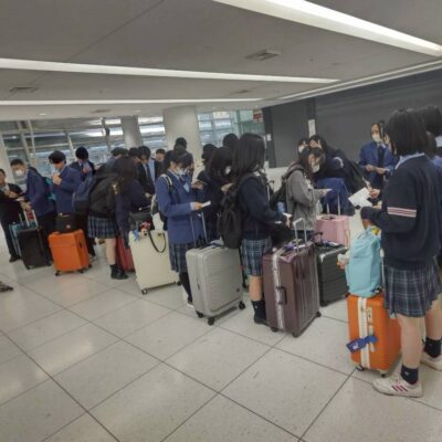 雨が予想されていた英数科出発の朝。暗闇の中で煌めく星々が私たちを出迎えてくれた。朝早い時間でも、英数科の生徒は笑顔でバスに向かい、わくわく気分で空港、セントレアへと向かった。日の出とともに愛知県を出発。初めて飛行機に乗った生徒もいるのか離陸、着陸時に興奮して外を見る生徒がいました。到着した際、分厚い雲がかかっていましたが、雨は降りませんでした。
