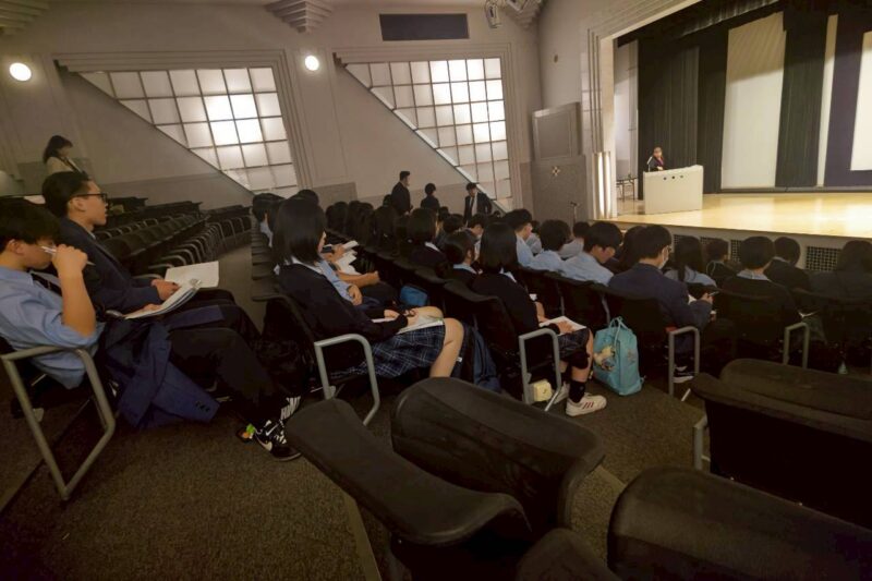 沖縄県平和祈念資料館では、まず、戦争を実際に体験した方が、戦争時、そして戦争後どのような思いで過ごし、どう行動したかを語ってくれました。体験者の話を聞いて涙している生徒の姿が印象的でした。
