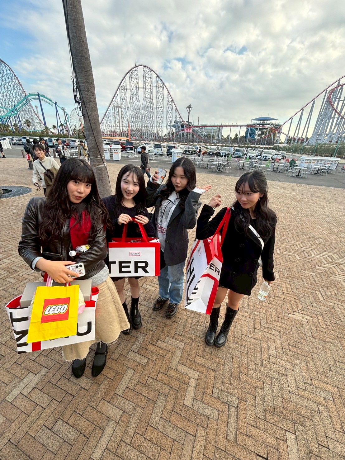 絶叫が苦手な生徒は、隣接されている「ジャズドリーム長嶋」でお買い物を楽しみました。広大な敷地に並ぶブランドショップの数々に、生徒たちのテンションは最高潮。あちこちでショッピングバッグを手にした生徒たちの笑顔が見られました。「ずっと欲しかったNIKEの靴買えました!」と満足そうでした。