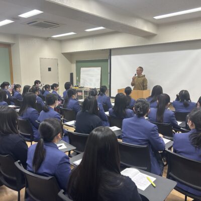 その後教員を代表して普音科3学年主任の林泰弘先生よりご自身の体験談を交え、最後まで諦めずに取り組む大切さを伝えて頂きました。