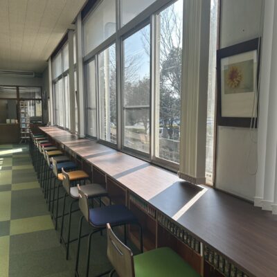 心地よい陽の光と、ところどころに飾られている図書館の村松さん作の素敵なデッサンや心癒やされる写真が、生徒たちの安らぎと学びの空間を築いています。図書館の村松さんや事務局の前納さんを中心とする皆さんのご協力により、このような素敵な図書館ができました。多くの生徒の皆さんに利用していただければと思っています。(文責:田嶌)