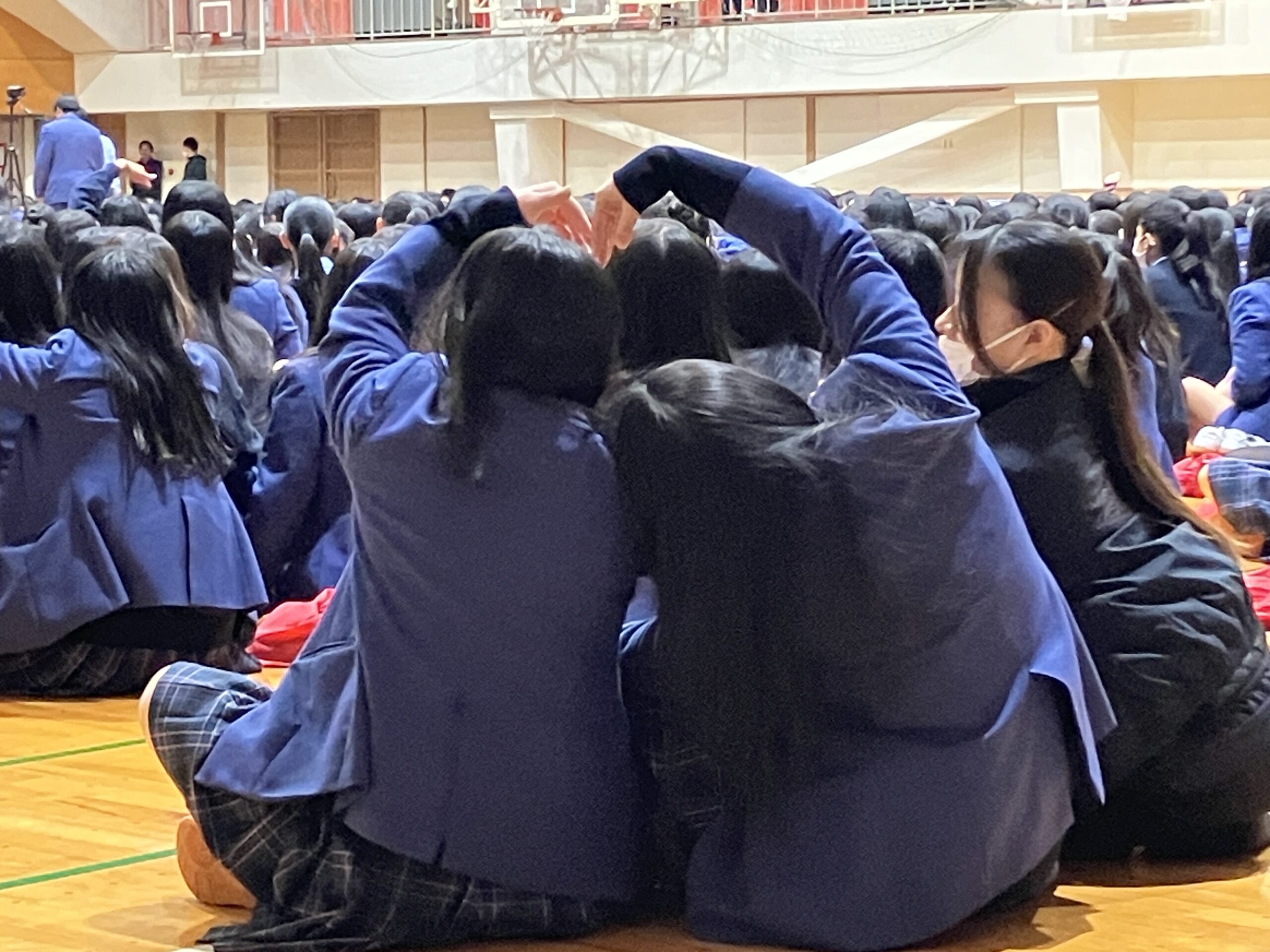 立ち上がって両手でハートを作り、想いを表現する生徒の姿もあり、会場は温かな空気に包まれました。