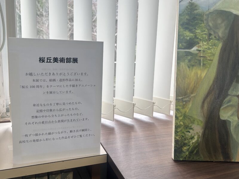 現在、図書館では日頃の活動の集大成として「桜丘高校美術部作品展」を開催しています。