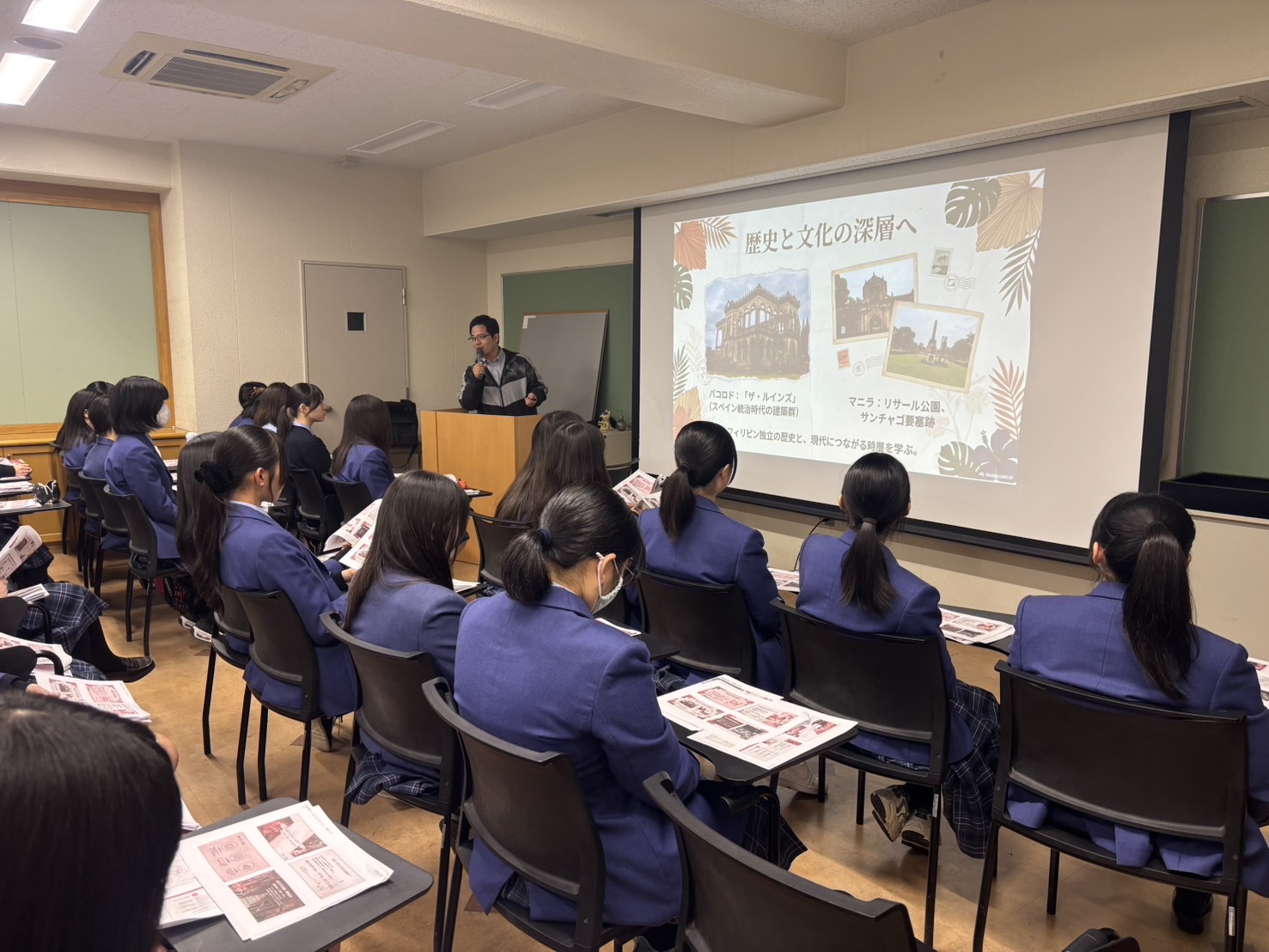 2月25日(水) 文理コース・国際貢献事業説明会を実施しました。文理コースでは学習と探究の2つの柱を大切にしています。1年次には企業探究プログラムに取り組み、2年次には国際貢献事業に取り組んでいきます。今回は来年から始まる国際貢献事業の説明を行いました。探究の授業の時間では生徒向けに、そして夜には保護者向けで行われました。