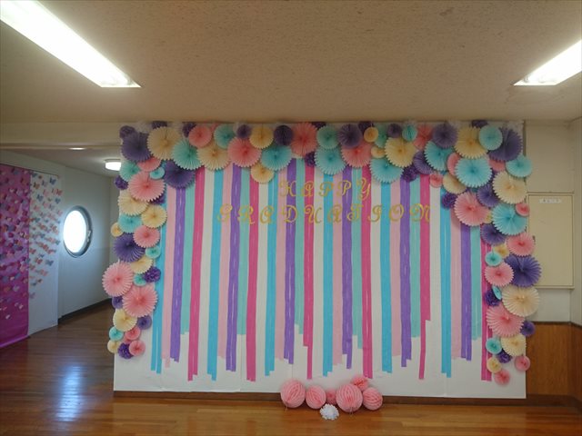 3月12日の「卒業証書授与式」の前日11日(水)、父母の皆さんが教室前のオープンのデ コレーションと校舎の掃除をしてくださいました。インスタ映えを意識した素晴らしい飾りつけで、卒業式当はは、生徒も保護者の皆さんも思い思いにデコレーションの前で記念写真を撮っていました。生徒が登校できない中、清掃もしっかりやってくださりありがとうございました。