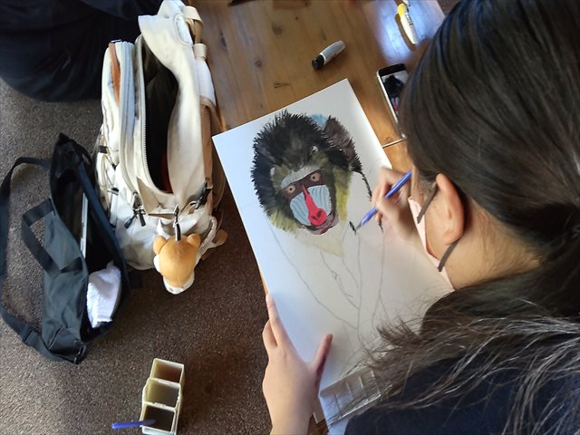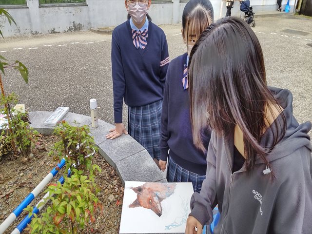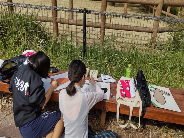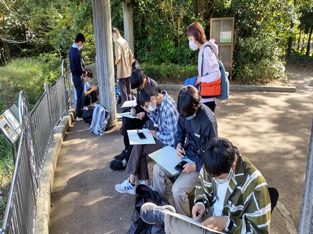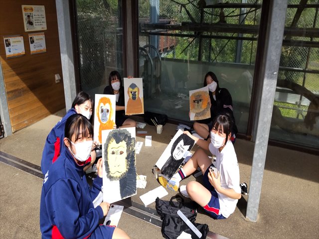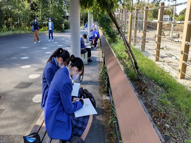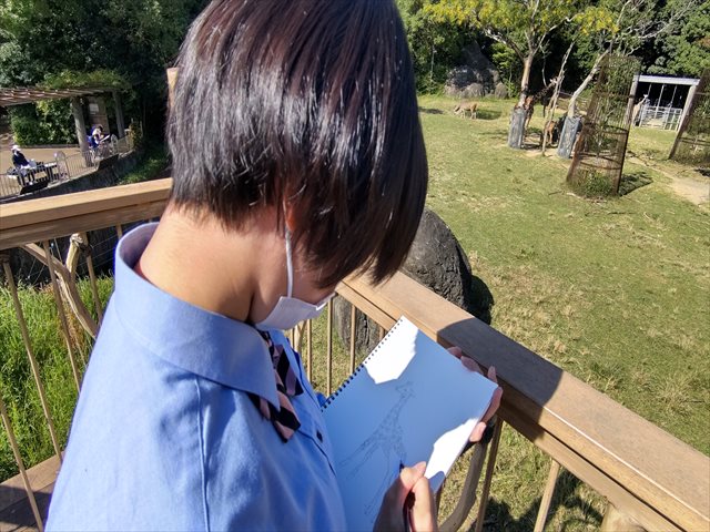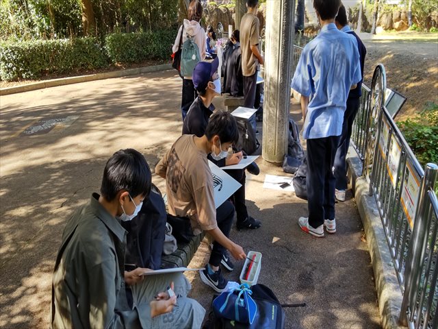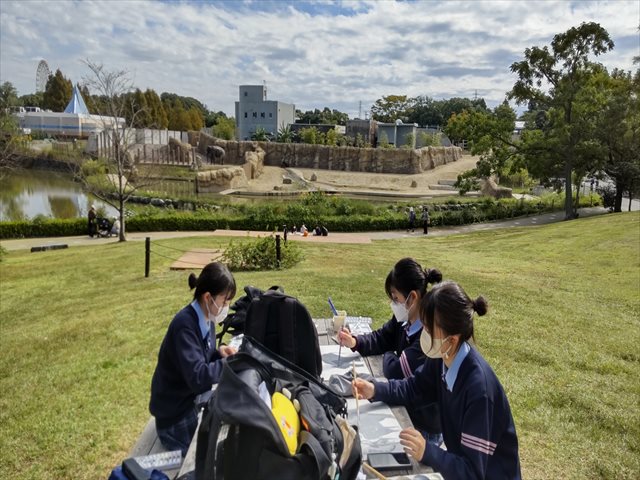 「豊橋市総合動植物公園・のんほいパーク」で行いました。 テーマは「興味の湧いた動物の良さや植物などを大きくのびのびと描き、色や形、構図を工夫しよう」です。温かく天気にも恵まれて、生徒たちは思い思いの場所で楽しく写生をしていました。後日、優秀作品は表彰、校内展示をします。