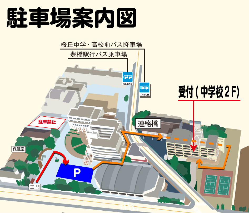 ※駐車場は、桜丘高等学校内の指定駐車スペースにおとめください。