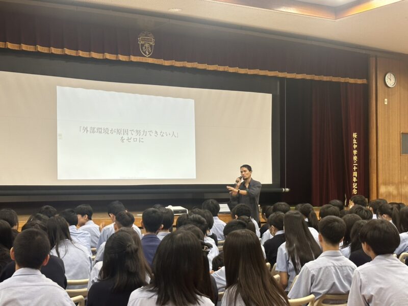 講話が終わると、生徒から「僕たちにできることってありますか。」という質問が飛び出しました。今日のような経験を通して、遠い国で起きていることも自分事としてとらえることができる感性を醸成してほしいと思います。