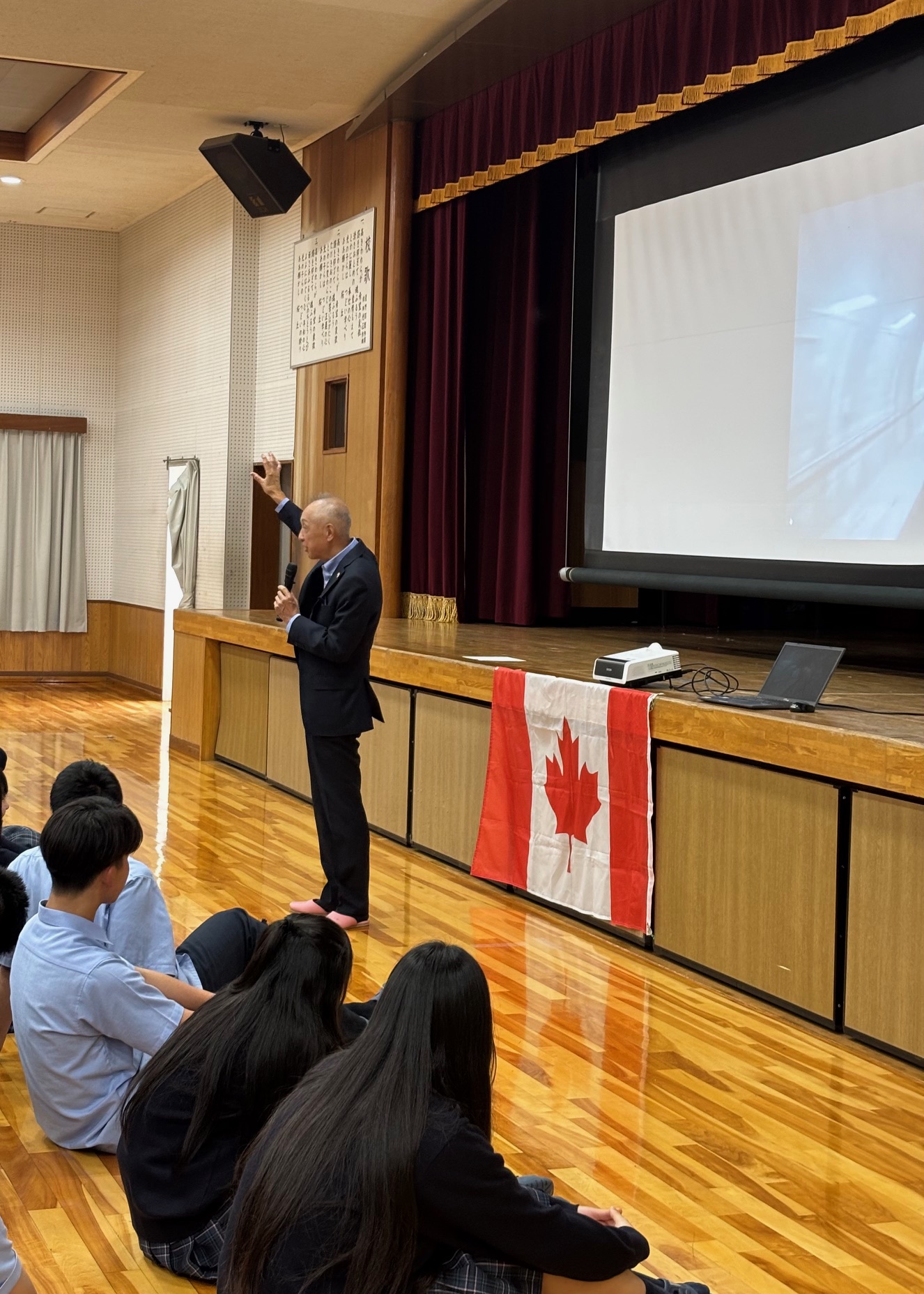 また、カナダの魅力なども伝えていただきました。生徒たちの英語学習のモチベーションへとつながり、これからの英語学習に生かしてほしいと思います。