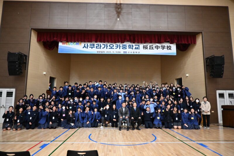 1日目は現地の中学校を訪問し、交流会を行いました。双方の生徒が出し物を披露し合い、韓国の伝統遊びやK-popダンスなどを体験させていただきました。同世代同士ということもあり、すぐに打ち解ける生徒も多く、文化や言語の違いを間近で感じる貴重な経験となりました。