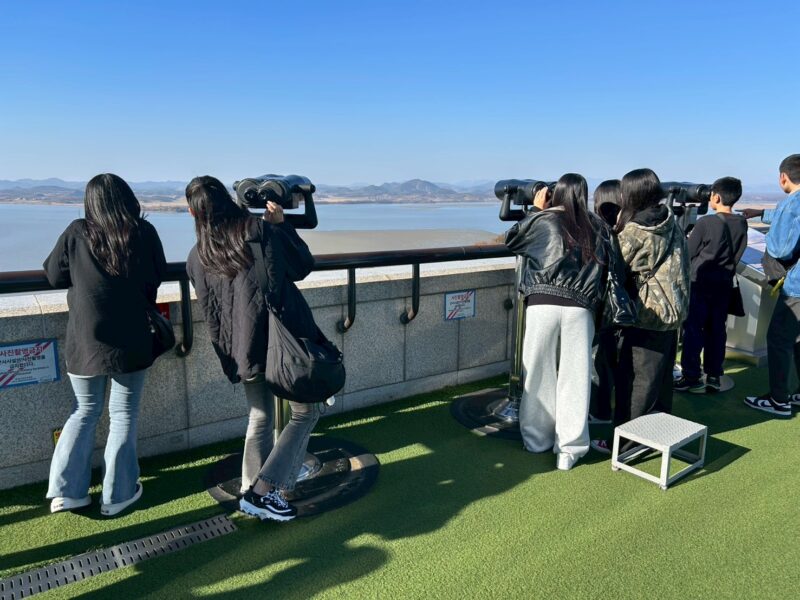 その他の行程では、ロッテワールドでのアトラクションを楽しんだり、ソウル国立博物館での歴史展示の見学、世界遺産・景福宮での韓服体験など、韓国文化を味わう多彩な活動を行いました。さらに統一展望台では、韓国と北朝鮮の距離感を肌で感じ、現地の方ならではの視点でお話を伺うことができ、生徒たちにとって大変印象深い時間となりました。